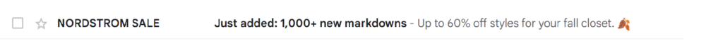 The brands appearing in the inbox example below use emojis, discount amounts, and sometimes a combination of both to attract attention.